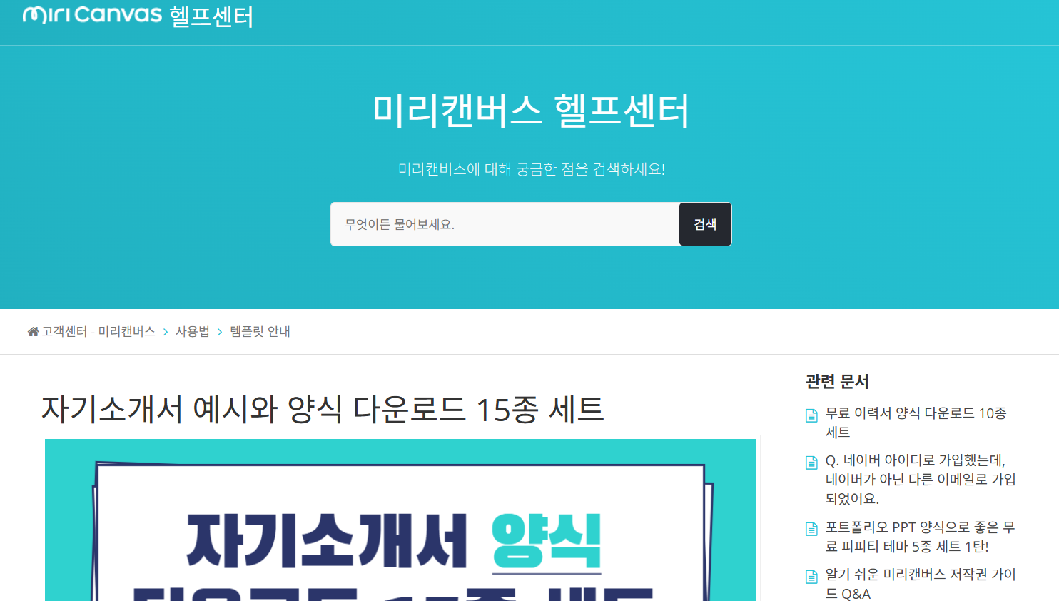 자기소개서 양식 다운로드 관련 게시물 또는 메뉴 선택